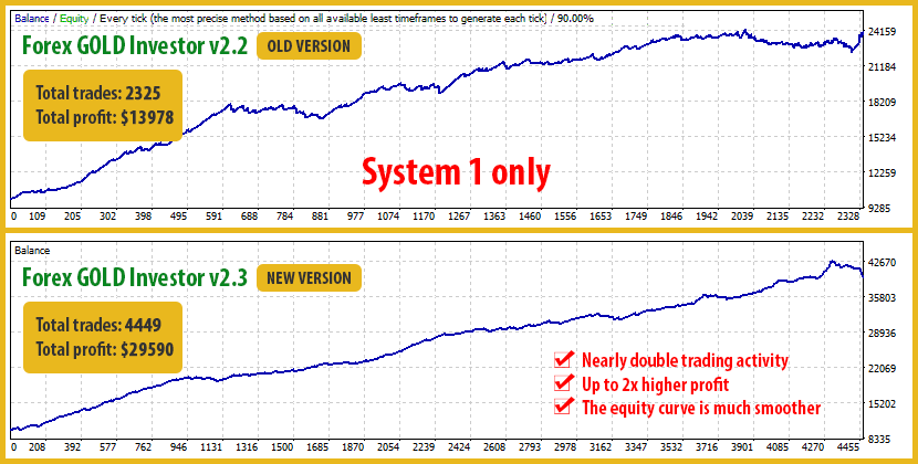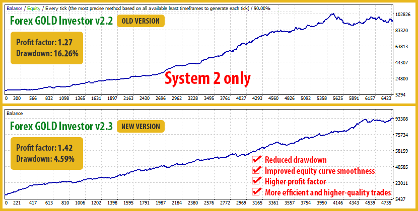 In the new version, System 2 trades less frequently but more intelligently, preserving profitability while delivering a much more stable account growth. Please check the image below to see the improvements in System 2: